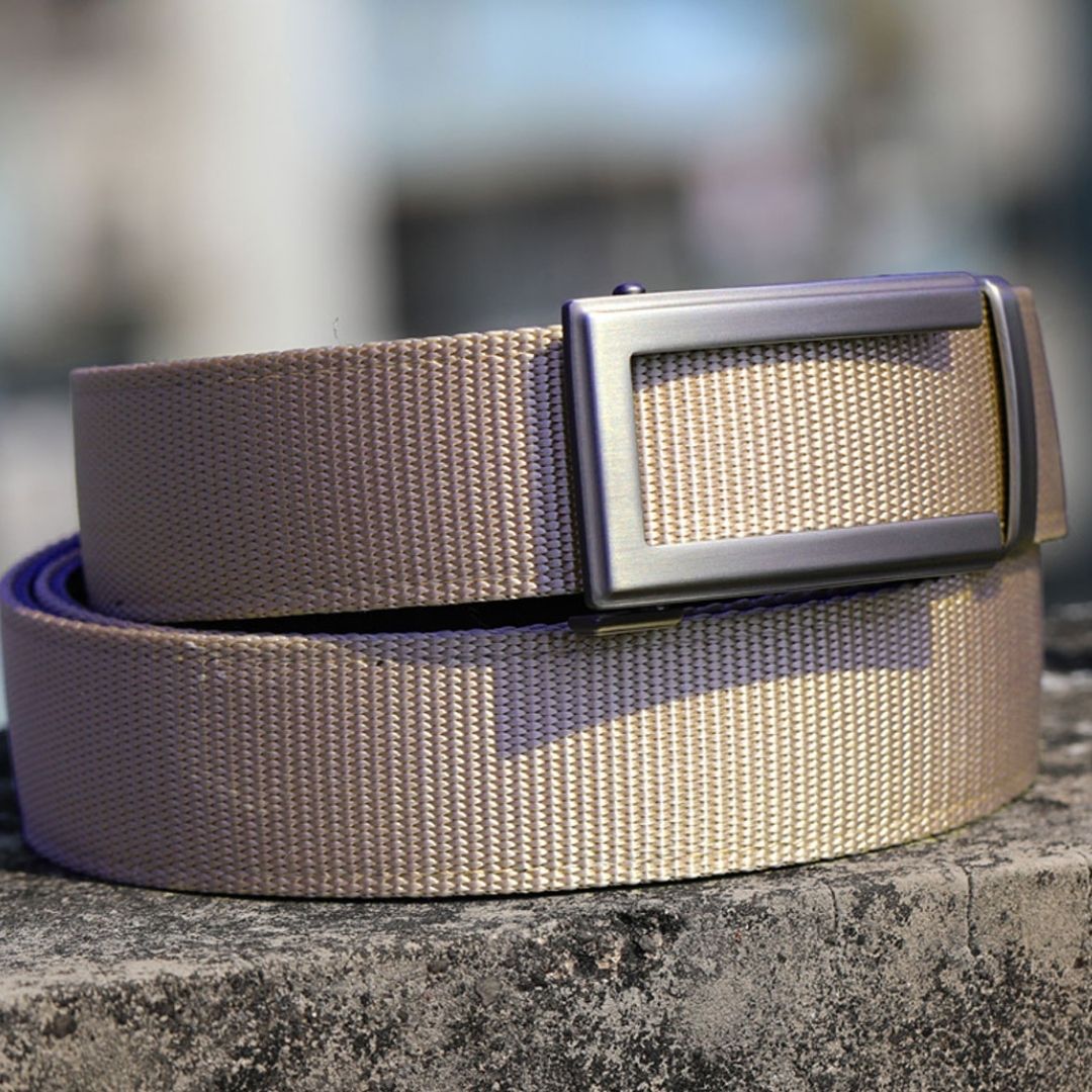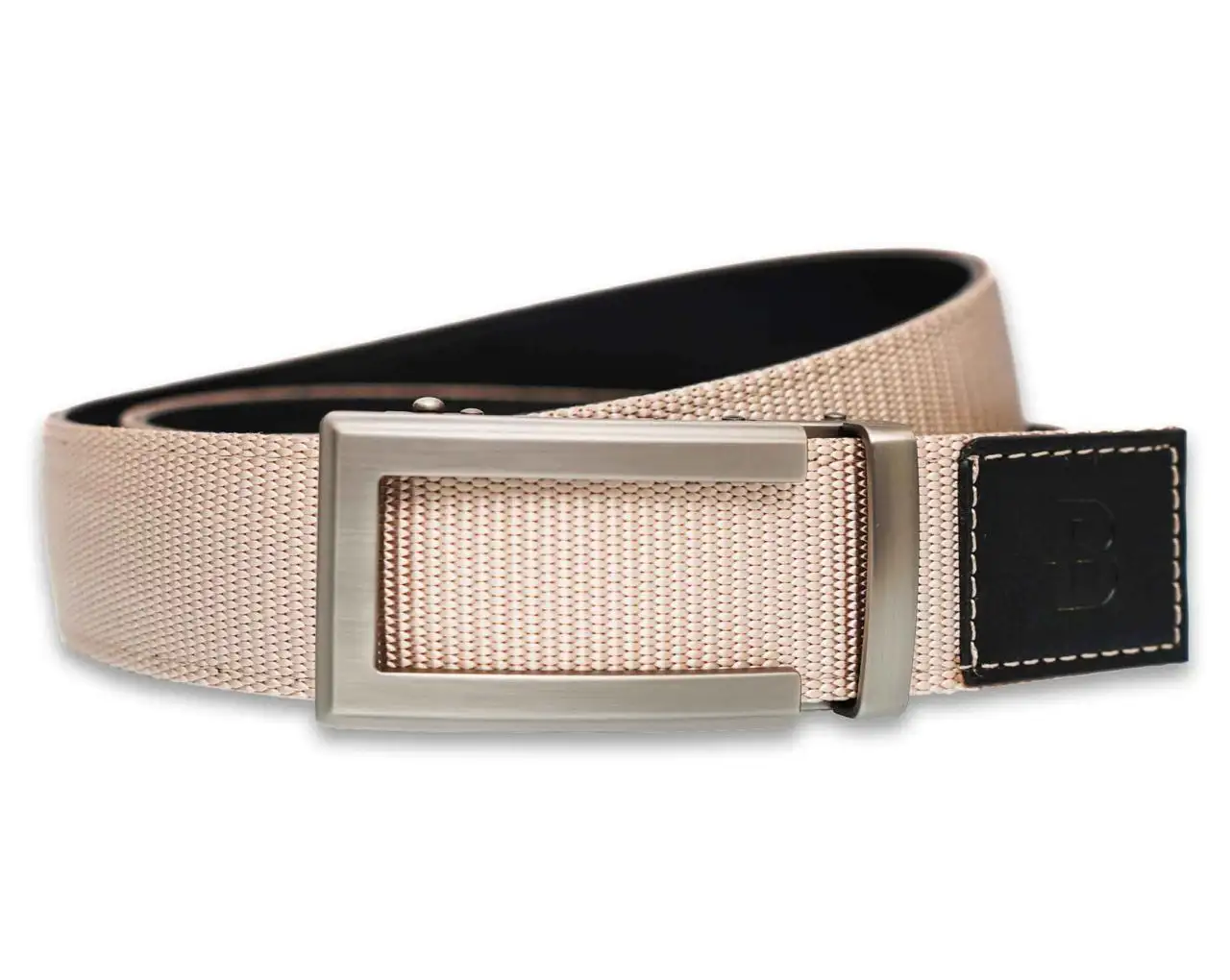Der beige Automatik Gürtel "Nylon Beige x Openmind" von Beltimore aus Leder und Nylon!